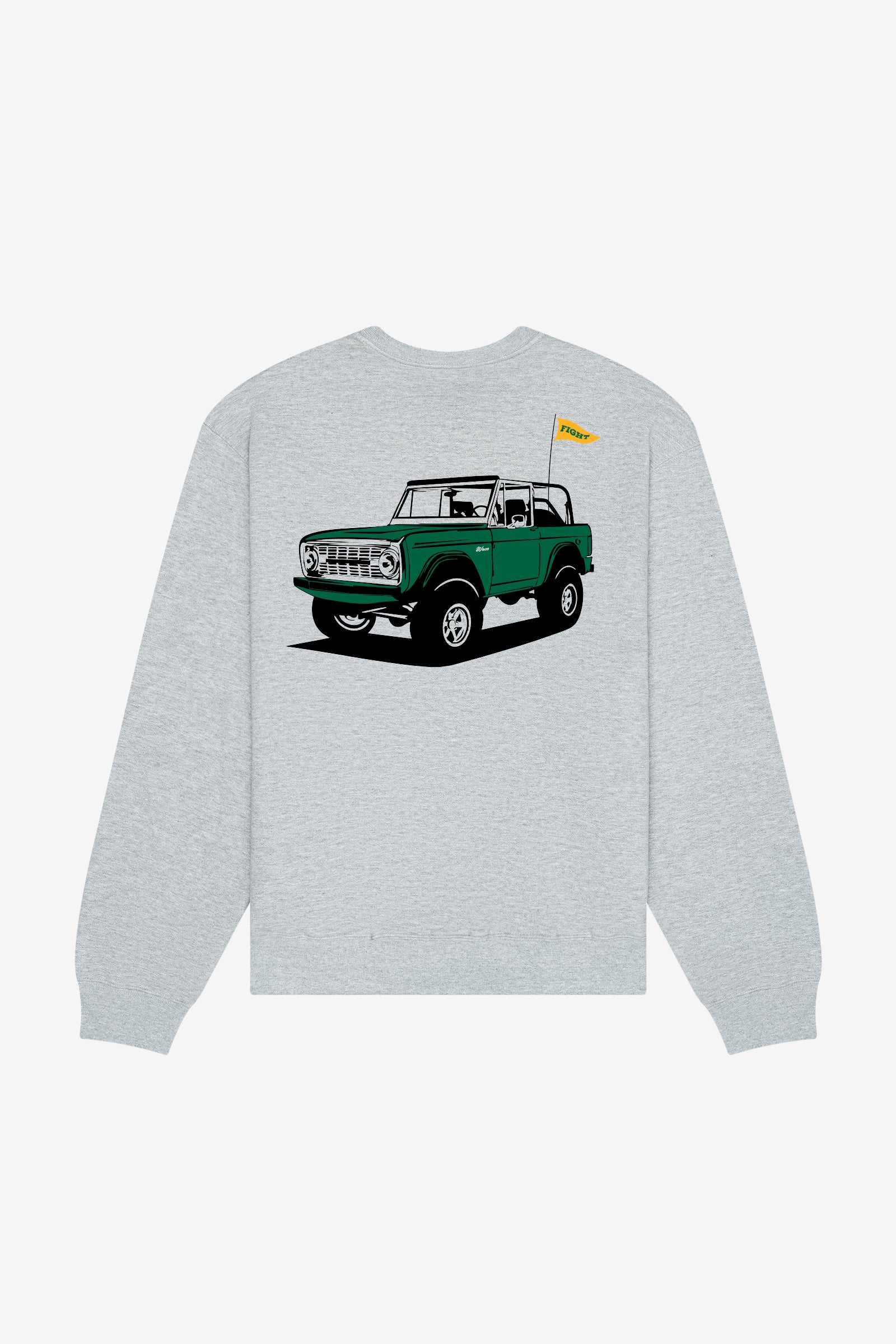 •Small, full-color flag graphic on front left chest; large, full-color Bronco graphic on back •Ultra-premium, 10-ounce, 60/40 Airlume combed and ring spun cotton/polyester fleece •Athletic Heather: 94/6 Airlume combed and ring spun cotton/polyester •Relaxed fit •Interior brushed fleece